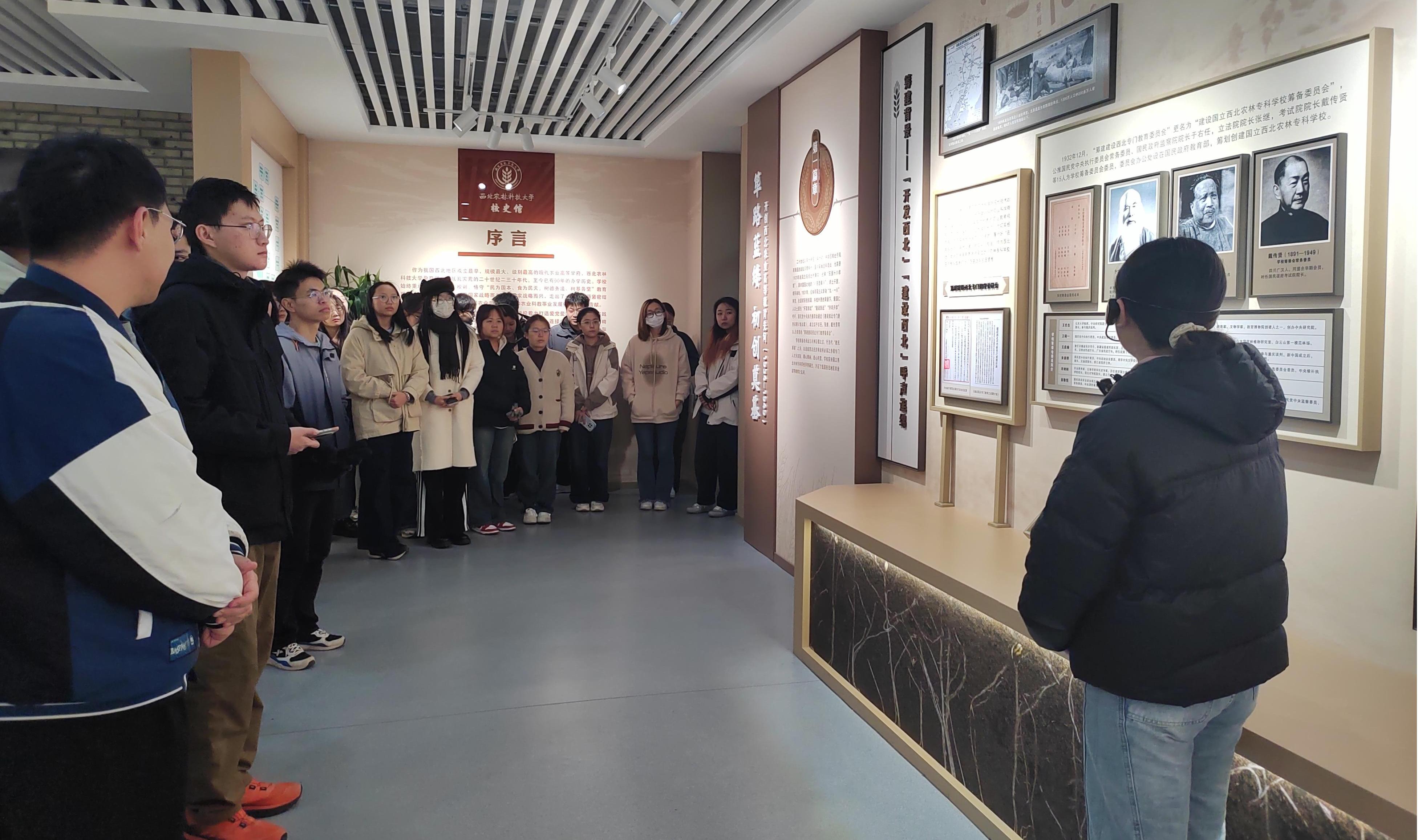 10月22日下午,学院党委组织全体学员,走进北校区三号教学楼校史馆,开展“知史爱校、明史奋进”主题教育实践活动。作为展示学校九十年光辉历程的重要窗口,校史馆以丰富史料和现代化展陈方式,生动再现了1934年于右任、辛树帜等先贤在民族危难之际,于杨凌农业起源地奠基办学的艰辛历程。