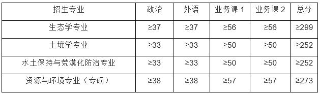 本年度计划招生27名,其中学硕18名、专硕9名。前期推免已招收学硕3名(水土保持与荒漠化防治专业2名,生态学1名),本次再从统考生中招收24名(其中土壤学5名,生态学4名,水土保持与荒漠化防治6名,资源与环境专业专硕学位9名)。各专业复试分数线如下: