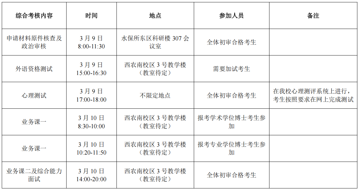 根据《西北农林科技大学博士研究生“申请-审核”制招生管理办法》(校研发〔2022〕322号)和《水土保持科学与工程学院2026年博士研究生招生“申请-审核”制工作细则》精神,现将我院2026年博士研究生招生综合考核工作安排如下: