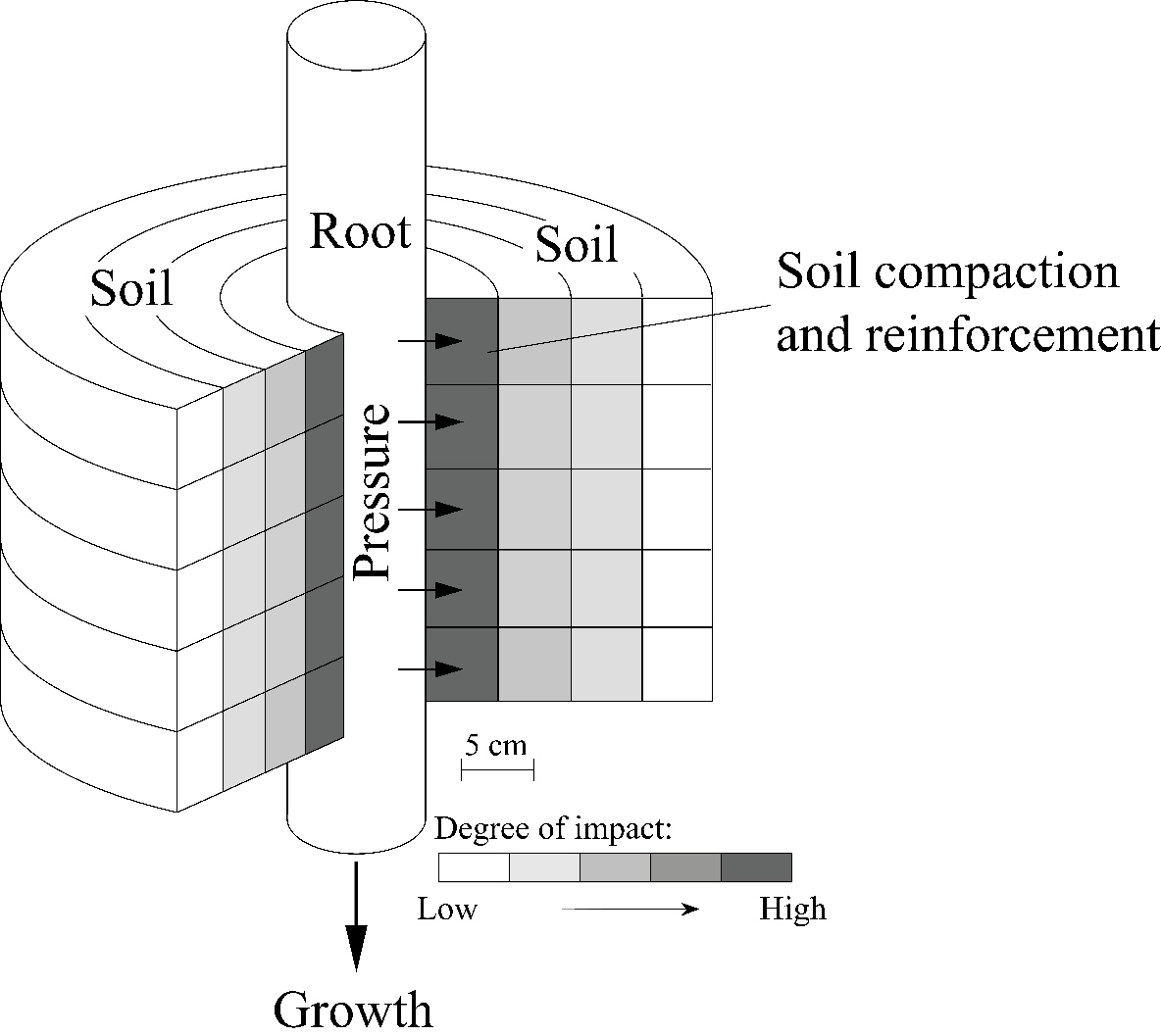 根系在稳定植株、吸收水分、加强土壤结构和稳定性方面具有重要作用,其多功能性是植被和生态系统研究的重点问题。然而,根系在生长过程中不断深入和加粗,会不断对周围土壤产生物理挤压,并改变土壤容重、孔隙度以及水分吸附和传导特性,尤其是林地根系占总生物量20%-40%时,影响更为强烈而持久。目前,学界对根系纵向深入与径向扩展引发的土壤形变及应力变化研究相对薄弱,导致降雨入渗速率等土壤和水文参数的测定和估算出现较大偏差,在黄土高原大规模植被恢复和黄河流域水文过程研究中尤为突出。