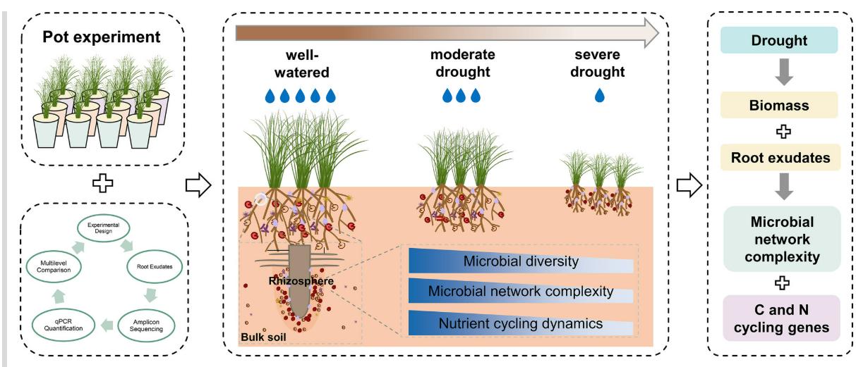 研究结果明确了在气候变化加剧背景下,根系分泌物在调控土壤微生物群落结构与功能方面的重要作用。干旱引发的微生物网络结构的破坏与功能基因的表达抑制,可能会限制土壤养分周转过程,进而削弱土壤生态系统应对未来极端气候的韧性。