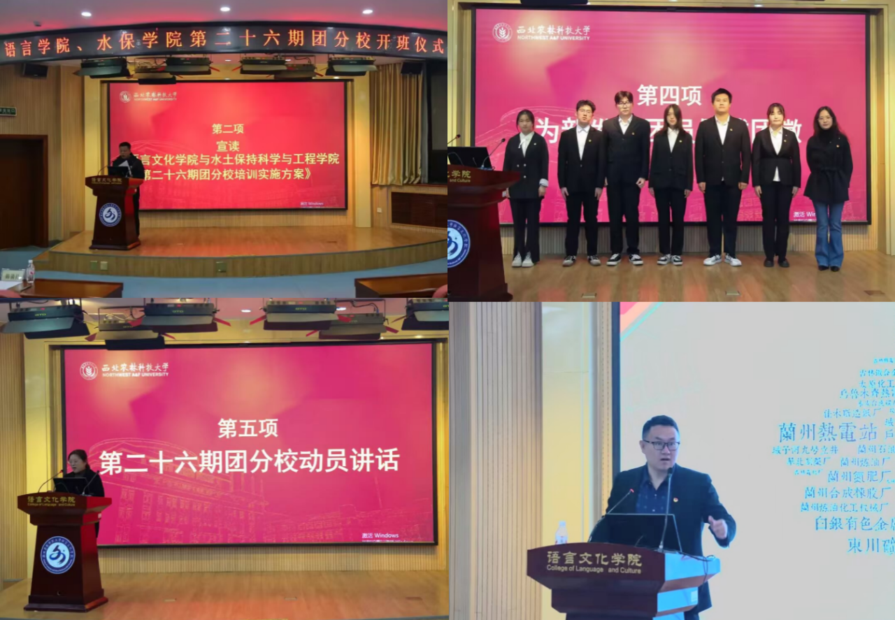 为深入学习贯彻习近平新时代中国特色社会主义思想,切实提升青年团员的思政素养与综合能力,10月30日,水保学院与语言学院联合举办第二十六期团分校开班仪式暨主题团课。水保学院党委副书记韩锁昌、语言学院副院长王宝平、马克思主义学院副教授赵星宇,以及两院团分委负责老师出席,第二十六期团分校全体学员参加活动。