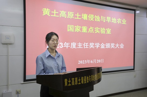 6月20日,水土保持研究所黄土高原土壤侵蚀与旱地农业国家重点实验室举行主任奖学金颁奖仪式。水保所所长冯浩研究员、上官周平研究员、邓西平研究员以及国重室班子成员,获奖学生代表参加了仪式。仪式由国重室副主任杨明义研究员主持。