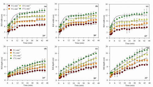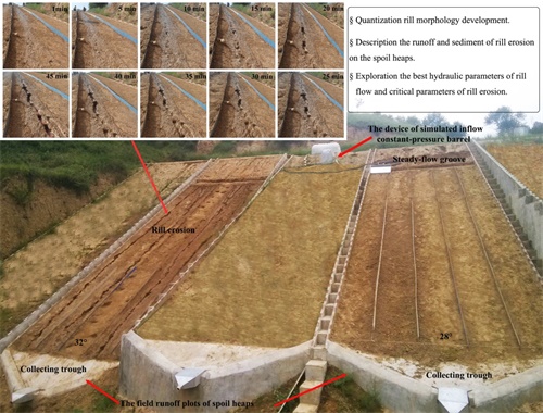 近日,水土保持研究所水土保持生态工程技术研究中心高照良研究员团队国际期刊Soil &Tillage Research(中科院1区,TOP)上发表了题为“Characteristics of rill erosion in spoil heaps under simulated inflow: A field runoff plot experiment”的研究论文。该研究基于对工程堆积体大量的野外调查,通过在野外试验小区坡面构筑微型形态的方法,对单条细沟动态发育过程进行连续观测,分析坡面细沟形态参数变化规律。研究结果表明,堆积体坡面细沟发育过程可划分为快速发展和缓慢发展两个阶段,沟宽、沟深、累计径流量和累计泥沙量在快速发展阶段对侵蚀泥沙总量的影响分别占81%、57%、29%和41%,沟深对坡面侵蚀泥沙总量的贡献比较大。此外,细沟发育过程中坡面流流型和流态也发生显著变化。该研究量化了工程堆积体坡面细沟动态发育过程,同时为细沟侵蚀形态演变与侵蚀产沙交互影响研究提供了新线索。