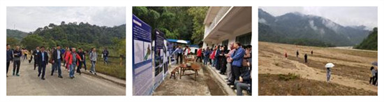 会后,参会代表详细考察了盈江县浑水沟泥石流治理工程。在浑水沟管理所,张信宝研究员和云南大学黄江成博士详细介绍了浑水沟治理工程的历史、设计原理及在山区发挥的重大作用。接着,与会代表冒雨登上了浑水沟的梯级坝群,对该工程在治理山地区域极端水土流失,及生态恢复过程中所发挥的巨大作用有了直观深刻的认识。