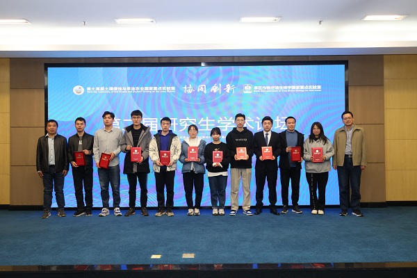 黄土高原土壤侵蚀与旱地农业国家重点实验室常务副主任李世清对论坛进行总结并主持颁奖仪式,冯浩研究员为特等奖获得者颁奖,许明祥研究员、郁飞教授、孙丽英教授、王飞研究员、上官周平研究员和李明军教授分别为获奖学生颁奖。