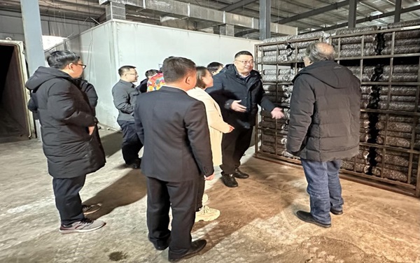 图2 专家参观延安菌舰公司菌棒加工厂