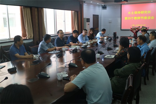 9月10日上午,郑粉莉等8位老中青教师代表、8位在读研究生代表与水保所领导班子和各管理部门负责人座谈。同学们为老师们献上鲜艳的鲜花,诚挚地道一声“老师,您辛苦了”,表达学子对老师的祝福和感恩。与会教师代表结合各自的科研和育人工作实践,满怀热情地就水保所科学研究传承、研究生培养管理、人才引进、文化建设等方面的工作积极献言献策。大家一致表示,这种仪式感的关怀让大家充分感受到了作为教师的无上光荣和所党委对科学家们的深切关爱,备受鼓舞,今后将在组织的关怀下更加努力地做好科研和育人工作。
