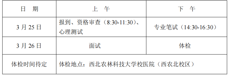 体检地点:西北农林科技大学北校区(校医院)。