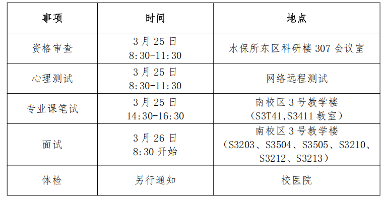 拟录取考生原则上体检均在西北农林科技大学校医院进行,如因特殊原因无法在校医院体检的考生须在当地二甲及以上医院体检,并于4月30日前(以当地邮戳时间为准)将体检表寄到水土保持研究所研究生办公室211室(联系方式:武老师,029-87012875)