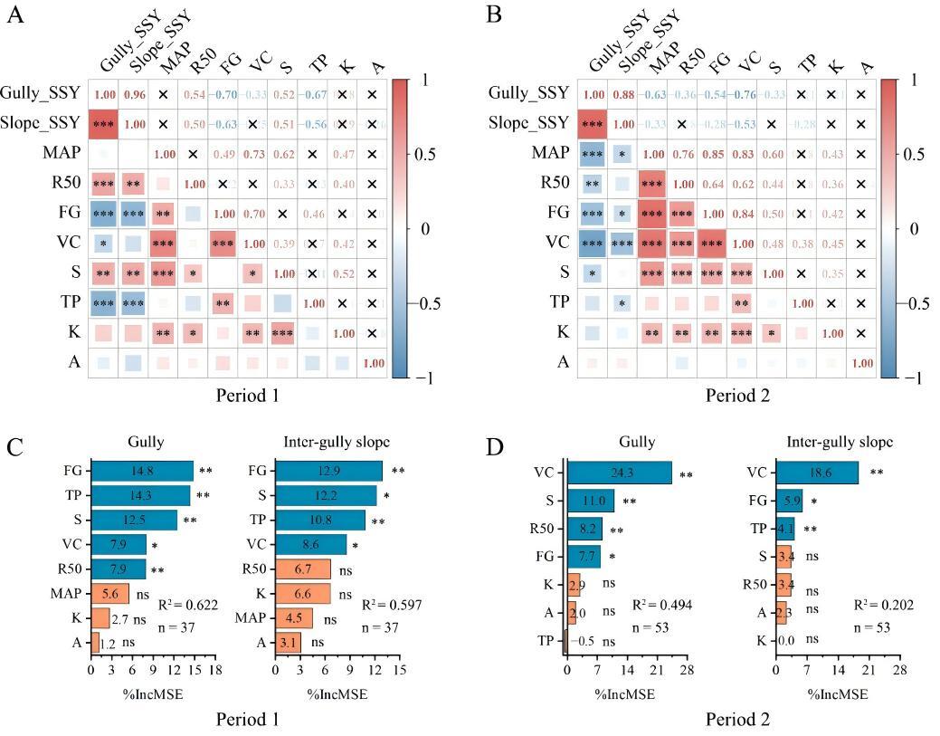 该研究阐明了植被恢复在源头小流域治理沟道侵蚀中的积极作用,指出未来黄土高原及类似脆弱生态区的水土保持工作应关注植被恢复带来的水分胁迫问题,并针对沟道侵蚀采取更精准的防控策略,为黄河中游高质量发展及区域生态治理提供了重要的科学依据。