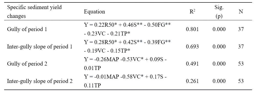 表1 退耕还林前后两个时段沟道及沟间坡产沙量变化的多变量线性回归分析