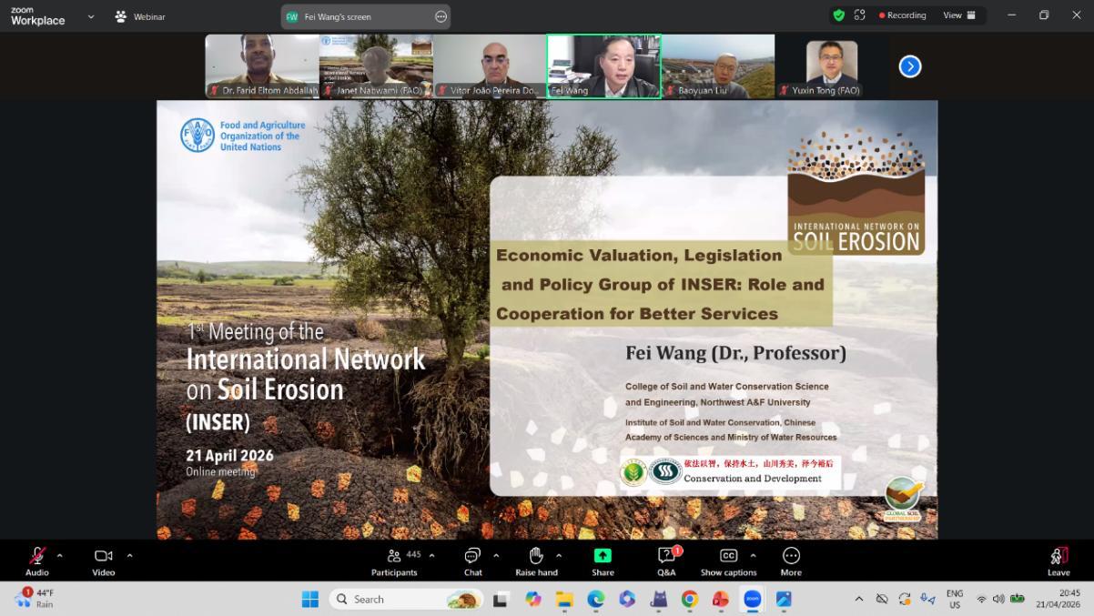 4月21日,国际土壤侵蚀网络(INSER)以线上形式召开首次工作会议,会议由联合国粮农组织(FAO)土地与水资源司(NSL)主持,选举产生INSER网络主席和三个技术工作组组长,提出总体工作方案和基本组织框架。来自亚洲、非洲、欧洲、北美、拉丁美洲/南美、太平洋地区等全球6个区域、62个国家的582名代表参会。